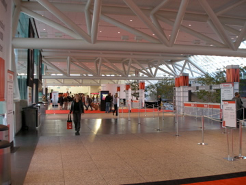 The entrance foyer is used for special registrations, such as media registration, while opposite the street the North Hall foyer is used for general registration. The Moscone Center is a bright and airy structure with ample facilities and interesting level changes.