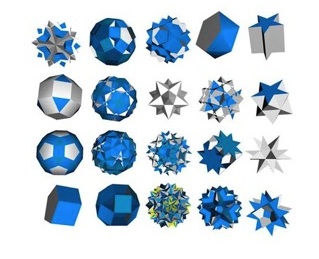 In version 7 there is a black stealth bomber model included. The Invis website doesn’t do a very good job of making clear what features are new to version 7. In version 7.0.11, they have added the Polymaker tool. Using algorithms by Dr. Zvi Har’El, this powerful plugin can create a huge variety of polyhedral AC3D objects. The image below is just a small sample of what is possible.
