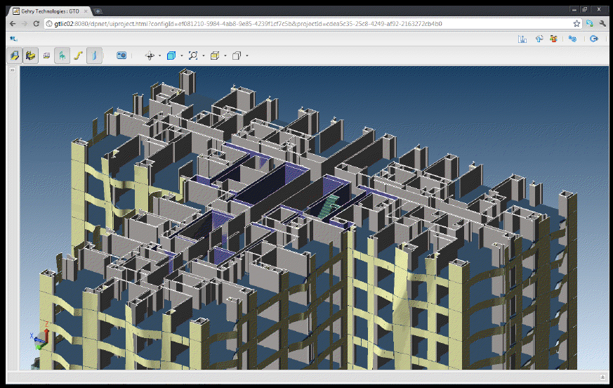 01 - Gehry Technologies' GTeam is a web-based software as a service (SaaS) application delivered on a massively scalable architecture. One feature is the ability to not just load and view massive BIM models but take snapshots to share and track changes through markup and other features. (image courtesy of Gehry Technologies).