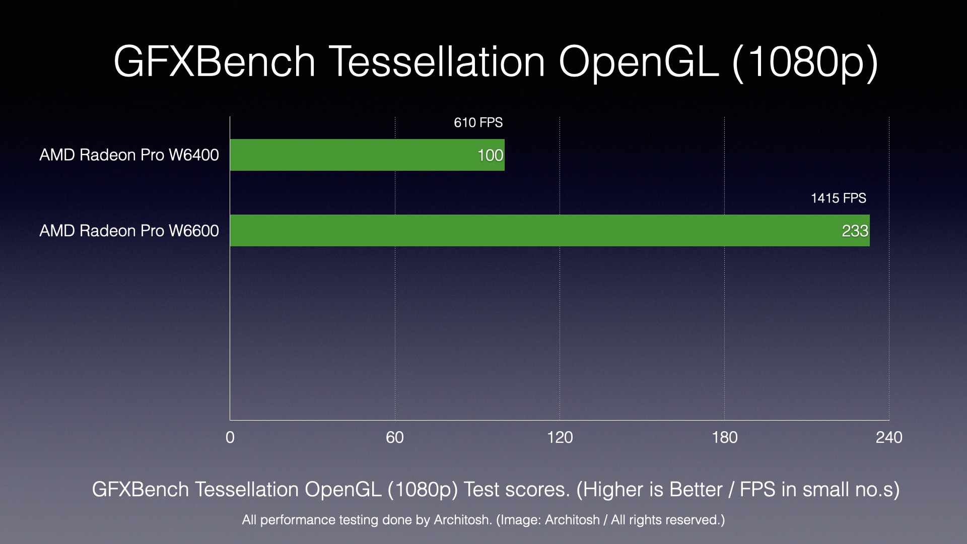 Chart 3: GFXBench Tessellation OpenGL test. Longer bars are better. (Image: Architosh / All rights reserved.)